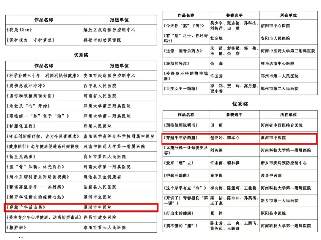 自3月28日以來,經過初賽、分主題決賽、總決賽的激烈角逐,漯河市中醫(yī)院手術室主管護師包亞沖和外一科主治中醫(yī)師李本心共同創(chuàng)作的科普作品《穿越千年話藥膳》榮獲第六屆河南省健康科普技能大賽表演類優(yōu)秀獎,包亞沖創(chuàng)作的《穿越千年話山藥》榮獲第六屆河南省健康科普技能大賽科普作品視頻類優(yōu)秀獎。