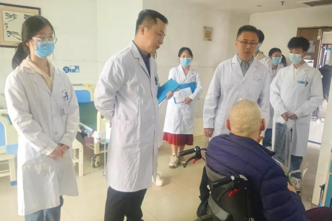 在業(yè)務查房中,胡彥輝教授通過查閱病歷資料、查體、詢問病史、輔檢報告等,為主管醫(yī)生講解了其對一些疑難病的診療思路、病情觀察與治療要點,并指導制定了疑難病患的診療方案。