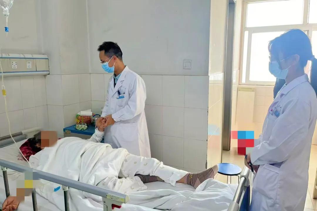 圖片術后孫亞中醫(yī)生為患者診脈并查看腿部血運情況