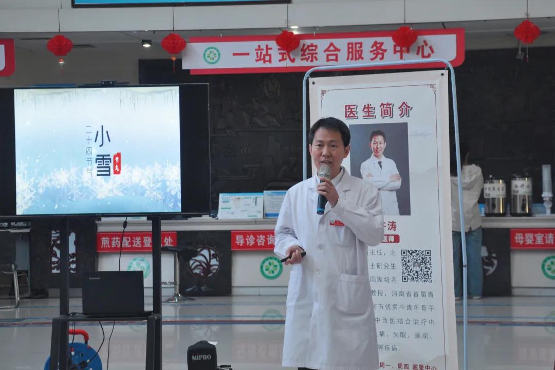 11月22日上午,漯河市中醫(yī)院開展“節(jié)氣話健康——小雪養(yǎng)生”健康科普講座,來院就診群眾、社區(qū)居民、中醫(yī)科普專家及相關(guān)志愿者等參加。