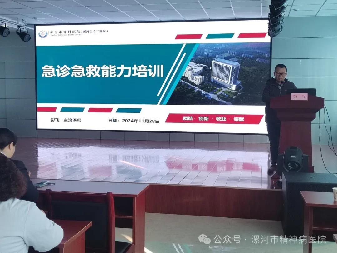 為提升漯河市精神病醫(yī)院急診急救處置能力,11月28日下午,由漯河市醫(yī)專二附院韓書環(huán)主任帶領宣講專家團隊,為該院專業(yè)技術人員進行了急診急救相關知識及實操技能的培訓。