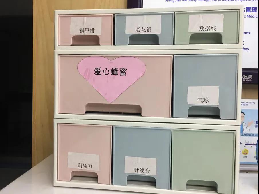 在工作中,經(jīng)常有患者或家屬因緊急住院,未準(zhǔn)備水杯、牙刷、牙膏、紙巾、手機(jī)充電線(xiàn)等日常用品,而向我們尋求幫助,這些住院患者日常生活中的不便之處,醫(yī)護(hù)人員都看在眼里,記在心上。鑒于原有的便民箱物品已經(jīng)不能完全滿(mǎn)足患者的需求,科室護(hù)士長(zhǎng)組織對(duì)全科醫(yī)護(hù)人員、患者及家屬進(jìn)行調(diào)研,收集建議并增加了患者使用頻率高的物品,方便患者根據(jù)自己的需求借用,解決患者和家屬的燃眉之急,為患者提供更加溫馨、舒適的住院環(huán)境。