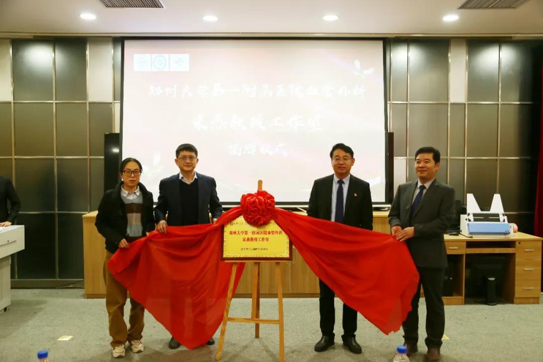 鄭州大學(xué)第一附屬醫(yī)院血管外科宋燕教授、鄭州大學(xué)第一附屬醫(yī)院血管外科劉衛(wèi)萍教授、漯河醫(yī)專二附院黨委書記柴運(yùn)洪、漯河醫(yī)專二附院急診外科主任史永濤共同為鄭州大學(xué)第一附屬醫(yī)院血管外科宋燕教授工作室揭牌。
