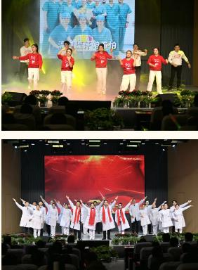 院領(lǐng)導(dǎo)班子也全員參與,登上舞臺表演了歌曲、詩朗誦、太極拳、相聲、三句半等節(jié)目,他們?nèi)橥度氲谋硌?,展現(xiàn)出了十足的活力,拉近了與職工之間的距離,讓大家感受到了醫(yī)院這個大家庭的溫暖與團(tuán)結(jié),他們的登場也瞬間點燃了現(xiàn)場的氣氛,將聯(lián)歡會的氛圍推向了高潮。