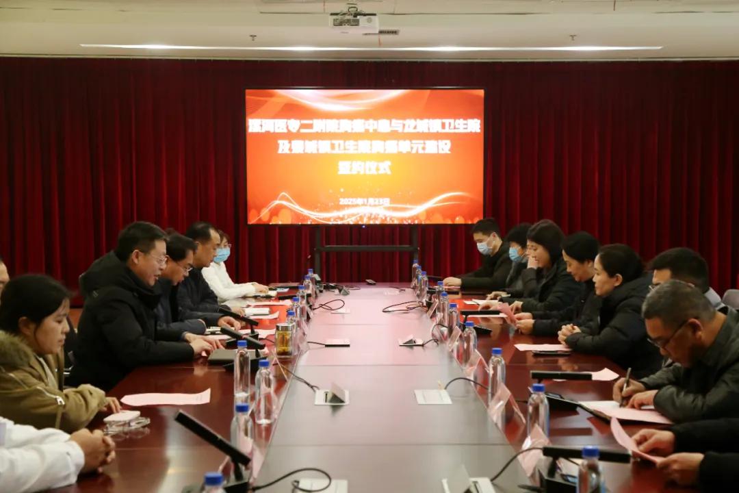 1月23日,漯河醫(yī)專二附院(漯河市骨科醫(yī)院、漯河市立醫(yī)院)胸痛中心與龍城鎮(zhèn)衛(wèi)生院及裴城鎮(zhèn)衛(wèi)生院胸痛單元簽約儀式在我院502會(huì)議室順利舉行。市衛(wèi)健委副主任于宏、醫(yī)政科科長(zhǎng)胡艷麗,郾城區(qū)衛(wèi)健委副主任徐燕、辦公室主任吳振西,漯河醫(yī)專二附院黨委書(shū)記柴運(yùn)洪、院長(zhǎng)王齊超、紀(jì)委書(shū)記劉國(guó)鋒,龍城鎮(zhèn)衛(wèi)生院院長(zhǎng)葛雙云、副院長(zhǎng)楊偉,裴城鎮(zhèn)衛(wèi)生院院長(zhǎng)王群峰、副院長(zhǎng)張盤宇以及我院胸痛中心專家團(tuán)隊(duì)、各單位業(yè)務(wù)骨干出席本次活動(dòng)。活動(dòng)由紀(jì)委書(shū)記劉國(guó)鋒主持。