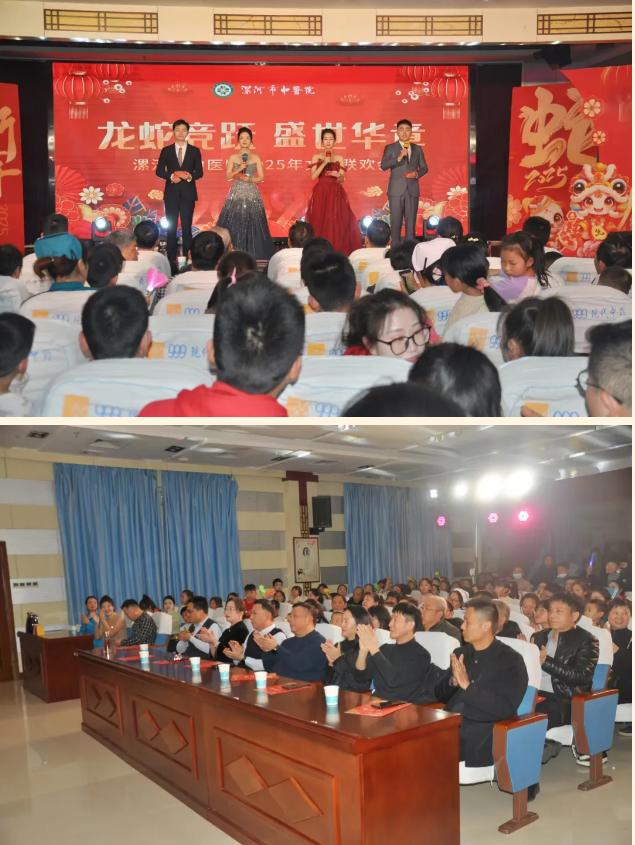 為進(jìn)一步弘揚(yáng)中華優(yōu)秀傳統(tǒng)文化,展現(xiàn)廣大干部職工團(tuán)結(jié)奮進(jìn)、蓬勃向上的精神風(fēng)貌,營造歡樂、喜慶、祥和的節(jié)日氛圍,2025年1月24日晚上,漯河市中醫(yī)院在四樓大會(huì)議室隆重舉行2025年“龍蛇競躍 盛世華章”文藝聯(lián)歡晚會(huì)。漯河市衛(wèi)健委副主任、三級(jí)調(diào)研員于宏,漯河市衛(wèi)健委黨組成員、市紀(jì)委監(jiān)委派駐第二十一紀(jì)檢監(jiān)察組組長朱黎明,漯河市衛(wèi)健委二級(jí)調(diào)研員吳朝文,漯河市中醫(yī)院領(lǐng)導(dǎo)班子成員等出席,與全院干部職工歡聚一堂,共度這個(gè)美好的夜晚,共同描繪醫(yī)院嶄新的畫卷。