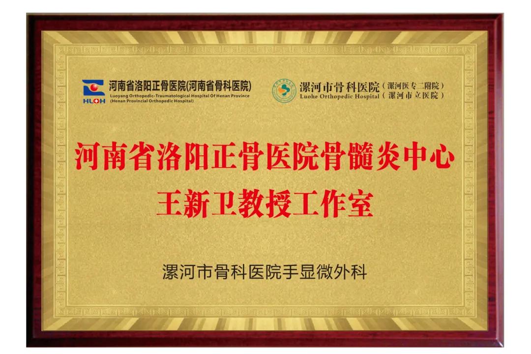 王新衛(wèi)教授于2002年率先在全國三級非盈利性醫(yī)院中成立骨髓炎??啤?006年骨髓炎科被河南省中醫(yī)藥管理局確定為河南省重點??平ㄔO(shè)單位,2011年順利通過驗收。2007年骨髓炎科被確定為國家中醫(yī)藥管理局"十一五"重點???,并擔(dān)任國家中醫(yī)藥管理局"十一五"重點專病"附骨疽"(慢性骨髓炎)協(xié)作組組長單位。組織完成了國家中醫(yī)藥管理局重點項目"附骨疽"(慢性骨髓炎)臨床診療方案的制定(慢性骨髓炎中醫(yī)診療標(biāo)準(zhǔn)),組織完成了國家中醫(yī)藥管理局"附骨疽"(慢性骨髓炎)臨床路徑的制定,由中國中西醫(yī)結(jié)合學(xué)會驗收發(fā)布。