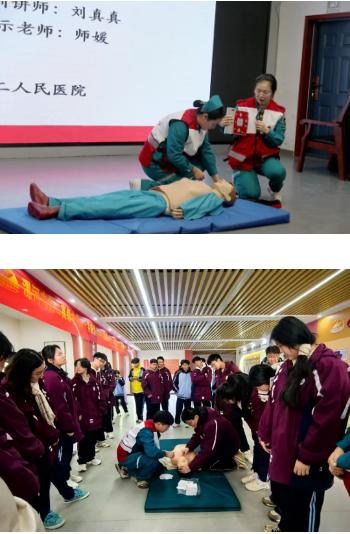 揭牌儀式后,市二院的“急救課堂”精彩開講。心肺復蘇培訓現(xiàn)場,他們以精準節(jié)奏按壓模擬人,講解著每一個關(guān)乎生死的細節(jié):“按壓深度、頻率,這是與死神賽跑的關(guān)鍵參數(shù),老師同學們務(wù)必牢記。”面對同學們的踴躍提問,醫(yī)護人員始終面帶微笑,耐心解答,確保每位同學都能聽懂、學會。