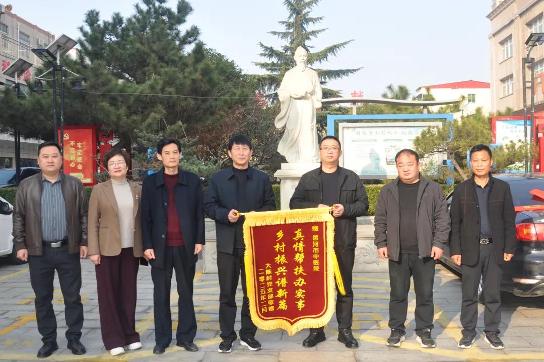 2月28日上午,源匯區(qū)大劉鎮(zhèn)黨委書記郭嘉琦帶領(lǐng)鎮(zhèn)干部同大陳村“兩委”干部一行來到漯河市中醫(yī)院,將“深情幫扶辦實(shí)事,鄉(xiāng)村振興譜新篇 ”和“駐村幫扶勇?lián)?dāng),恪盡職守解民憂”兩面錦旗分別送到漯河市中醫(yī)院黨委副書記、副院長張文吉和醫(yī)院派駐大陳村“第一”書記朱振華的手中,以此感謝漯河市中醫(yī)院兩年多來對大劉鎮(zhèn)大陳村脫貧攻堅(jiān)以及鄉(xiāng)村振興工作的傾情幫扶和大力支持,院黨委副書記、副院長張文吉帶領(lǐng)相關(guān)科室負(fù)責(zé)人接待并召開座談會(huì)。