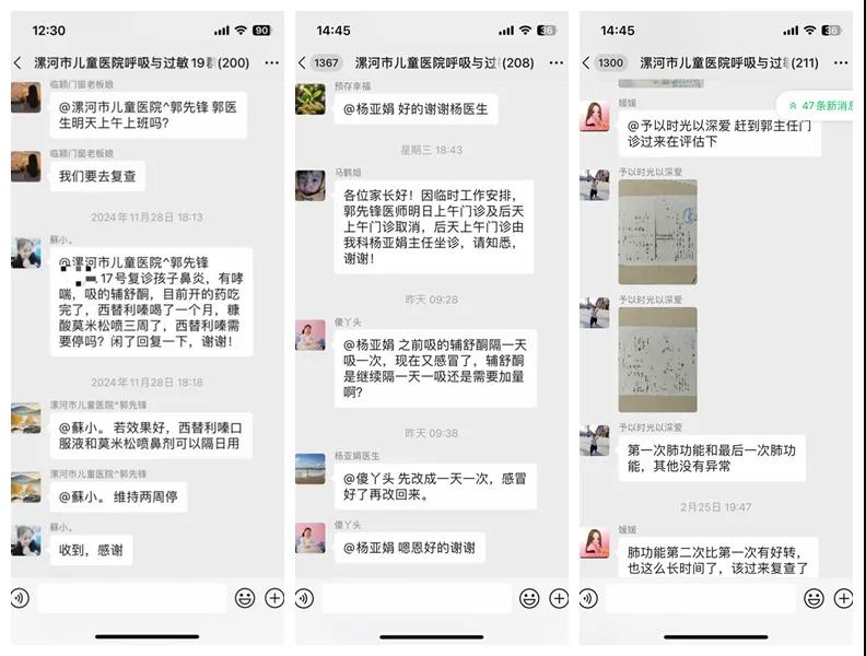 科室建立了咳嗽哮喘微信群,每個(gè)群配備有兩名醫(yī)生和一名哮喘專科護(hù)士,針對(duì)有疑問的家長(zhǎng),我們直接線上解答,減少就診奔波。此外,科室還定期在微信群內(nèi)發(fā)布哮喘相關(guān)的健康資訊,包括季節(jié)性哮喘預(yù)防小貼士、飲食調(diào)理建議等,幫助家長(zhǎng)更好地管理孩子的哮喘狀況。