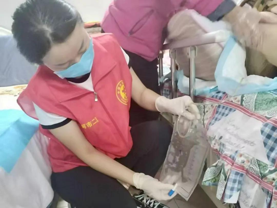 86歲的張奶奶因腦梗塞后遺癥導(dǎo)致骶尾部及全身多處皮膚壓瘡,需要暫時(shí)留置尿管,出院前,護(hù)士詳細(xì)為她及家屬講解了居家護(hù)理注意事項(xiàng),并推薦了“豫健護(hù)理到家”服務(wù)。3月28日,考慮到老人行動(dòng)不便、往返醫(yī)院困難,家屬通過(guò)平臺(tái)預(yù)約了上門更換尿管服務(wù)。老年醫(yī)學(xué)科護(hù)士長(zhǎng)接到豫健護(hù)理到家平臺(tái)下單通知,立即派資深護(hù)士攜帶相關(guān)護(hù)理用品來(lái)到張奶奶家中。護(hù)理人員嚴(yán)格按照操作規(guī)范,輕柔地為老人更換尿管,并耐心指導(dǎo)家屬日常護(hù)理要點(diǎn),如觀察尿液顏色、保持管路通暢及皮膚傷口護(hù)理等。“不用來(lái)回奔波,在家就能享受和醫(yī)院一樣的服務(wù),真的太方便了!”張奶奶的女兒連連稱贊。