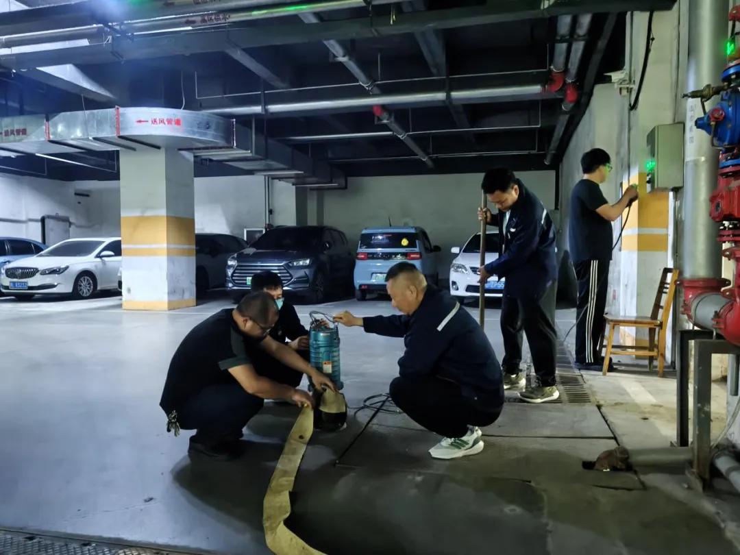 演練模擬漯河市區(qū)出現(xiàn)持續(xù)強(qiáng)降雨天氣,由于短時(shí)間降雨量過(guò)大,造成雨水倒灌,致使地下車庫(kù)、配電間等重點(diǎn)地下空間區(qū)域進(jìn)水?,F(xiàn)場(chǎng)值班發(fā)現(xiàn)險(xiǎn)情,報(bào)告防汛總指揮,總指揮迅速啟動(dòng)防汛搶險(xiǎn)應(yīng)急預(yù)案,組織防汛應(yīng)急救援隊(duì)進(jìn)行搶險(xiǎn)救援,保衛(wèi)人員負(fù)責(zé)疏散撤離,同心協(xié)力處置險(xiǎn)情。