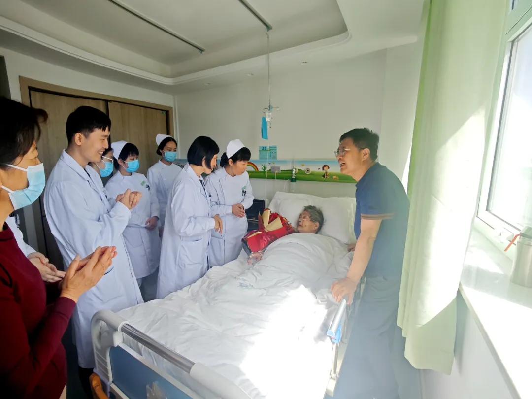 在市二院醫(yī)療救治的第一線,不僅有嚴(yán)謹(jǐn)專業(yè)的診療,更有溫暖真摯的關(guān)懷。4月13日上午,市二院呼吸與內(nèi)分泌科病房里傳來(lái)陣陣歡聲笑語(yǔ),科室醫(yī)護(hù)人員為90歲的秦阿姨精心準(zhǔn)備了一場(chǎng)生日會(huì),用愛(ài)與陪伴為老人送上最特別的祝福。