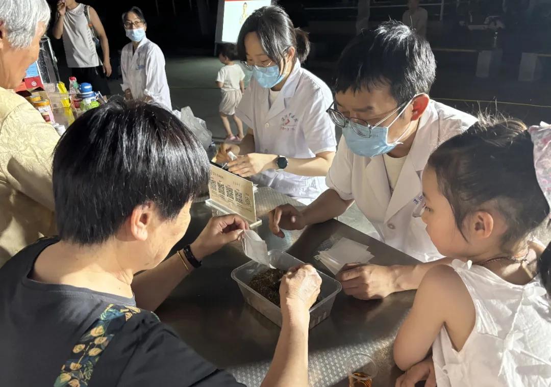 院黨委書記、院長(zhǎng)楊軼,紀(jì)委書記劉家棟到夜市為群眾送上端午的關(guān)懷,活動(dòng)現(xiàn)場(chǎng)群眾參與度高、積極互動(dòng)。在中藥養(yǎng)生茶品鑒區(qū),藥學(xué)部醫(yī)務(wù)人員為群眾提供免費(fèi)的茶飲品嘗,并逐一介紹養(yǎng)生茶飲的性味與功效,以及在日常養(yǎng)生保健中的巧妙應(yīng)用,使人們對(duì)博大精深的中醫(yī)文化有了更為直觀深刻的認(rèn)識(shí)。
