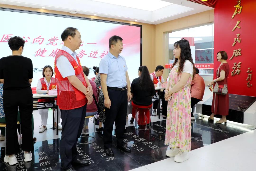 6月25日上午,市二院黨委書(shū)記魏松、紀(jì)委書(shū)記孟德陽(yáng)帶領(lǐng)門(mén)診黨支部黨員志愿者到新華街社區(qū)開(kāi)展“醫(yī)心向迎七一 健康服務(wù)進(jìn)社區(qū)”義診宣傳活動(dòng),以實(shí)際行動(dòng)向黨的生日獻(xiàn)禮。