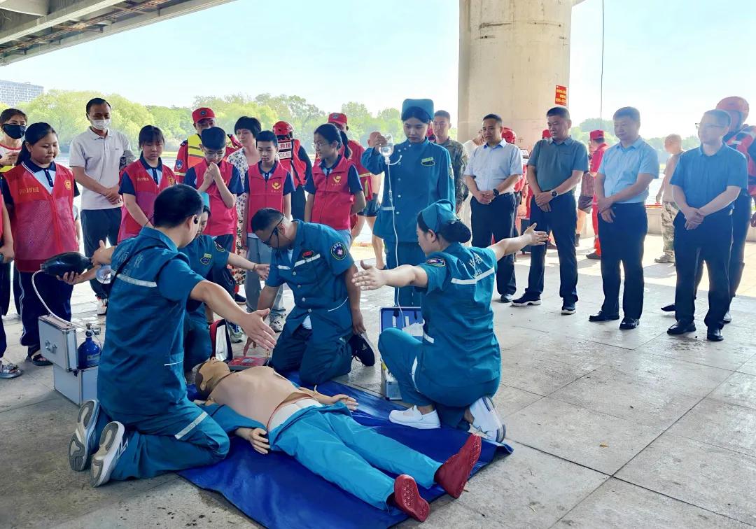 未雨綢繆,練為實戰(zhàn)。6月27日上午,在市國防動員辦公室統(tǒng)籌組織下,市二院黨委書記魏松、副院長劉橋帶領(lǐng)醫(yī)院防溺水急診醫(yī)療團隊9名隊員與十余名志愿者,全程參與2025年漯河市國防動員專業(yè)保障隊伍防溺水應(yīng)急演練,與市區(qū)兩級國動辦、西城區(qū)消防救援大隊、市國防動員水上志愿者們一道,圓滿完成了全流程實戰(zhàn)化救援演練。