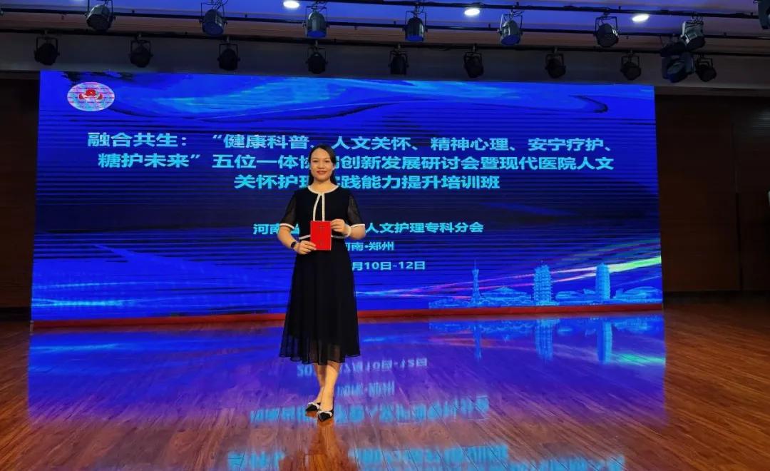 7月10日至12日,由河南省護理學(xué)會主辦的“融合共生:‘健康科普、人文關(guān)懷、精神心理、安寧療護、糖護未來’五位一體協(xié)同創(chuàng)新發(fā)展研討會暨現(xiàn)代醫(yī)院人文關(guān)懷護理實踐能力提升培訓(xùn)班”圓滿落幕。漯河醫(yī)專二附院(漯河市骨科醫(yī)院、漯河市立醫(yī)院)泌尿肛腸外科護士長、人文護理學(xué)組組長陳笑寒在大會進行發(fā)言。