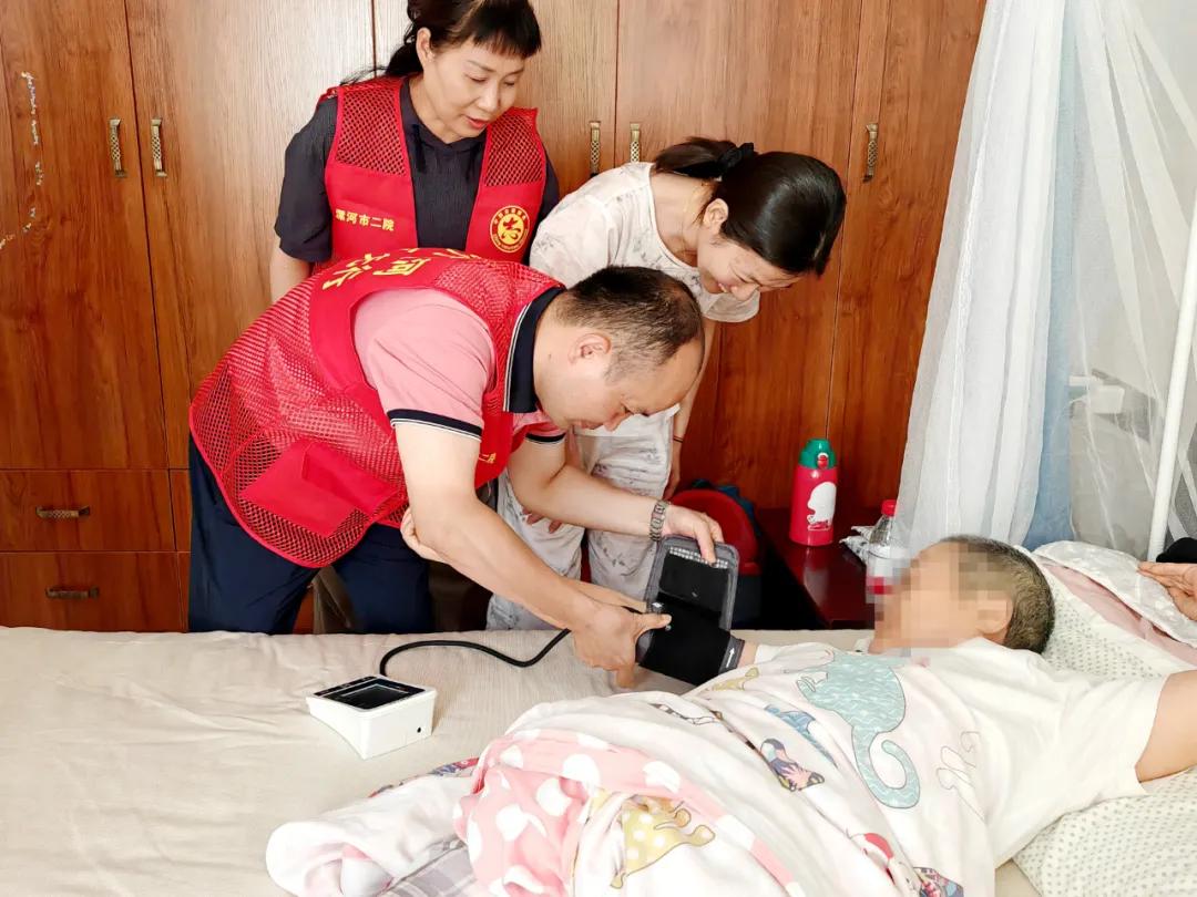 許阿姨患有心臟病、高血壓及腰椎疾病多年,天氣炎熱她的血壓一直不穩(wěn)定,家屬通過微信群向科室副主任楊光咨詢。7月16日,楊光在了解此情況后,與李慧新主任商量,決定帶醫(yī)療團(tuán)隊(duì)一起前往許阿姨家中,為她進(jìn)行血壓測量、心臟聽診等檢查,對(duì)其日常生活中的注意事項(xiàng)進(jìn)行了詳細(xì)的指導(dǎo)。同時(shí),還對(duì)許阿姨的用藥方案和康復(fù)計(jì)劃進(jìn)行了相應(yīng)的調(diào)整。