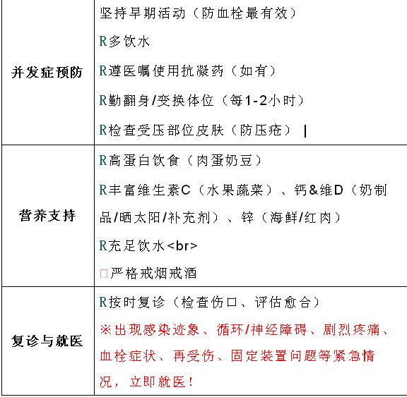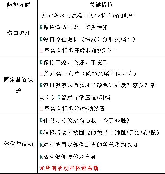 骨折術后拆線前的階段(通常為術后7-14天)是傷口愈合和早期穩(wěn)定的關鍵時期,特別是未拆線出院的患者做好自我防護至關重要,能有效預防感染、促進愈合、避免并發(fā)癥。以下是詳細的自我防護清單: