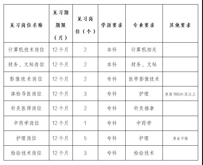 根據(jù)《河南省就業(yè)見習(xí)管理暫行辦法》及相關(guān)文件精神,結(jié)合漯河市中醫(yī)院實際需求,招收見習(xí)人員若干。現(xiàn)將有關(guān)事宜公告如下: