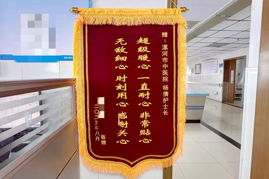 近日,科室里上演了一幕動人場景:患者及家屬將一面寫著 “超級暖心 一直耐心 非常貼心,無敵細(xì)心 時(shí)刻用心 感謝關(guān)心” 的錦旗送到楊倩護(hù)士長手中。字字句句都凝結(jié)著對護(hù)理團(tuán)隊(duì)的真摯謝意,也體現(xiàn)了雙向奔赴的醫(yī)患深情。