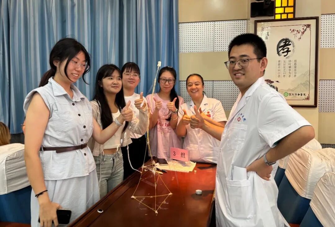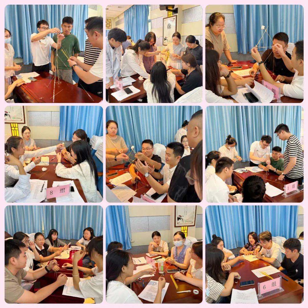 “團結(jié)協(xié)作”互動游戲:以14根意大利面、一個棉花糖、一卷膠帶為道具,將道具組合到一起做成一個模型固定到桌子上,哪個團隊的模型最高最結(jié)實,哪個團隊獲勝。游戲過程中,大家相互配合、彼此鼓勁,從生疏到默契,從緊張到從容,在歡聲笑語中打破了陌生壁壘。楊軼不時為大家加油,告誡大家不能靠個人的英雄主義和單打獨斗,通力合作才能出結(jié)果,團結(jié)才能共贏?,F(xiàn)場“醫(yī)院大家庭”的溫馨氛圍愈發(fā)濃厚。直至中午12點多,大家還意猶未盡。