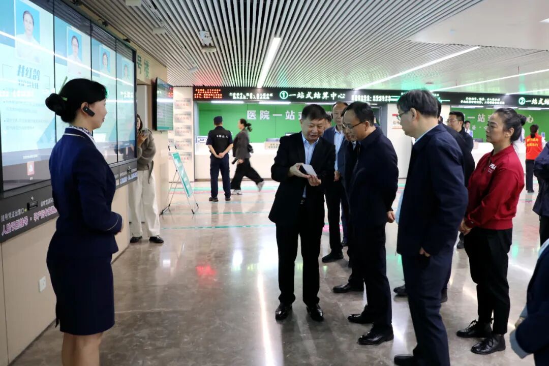 市人大趙耀嵩副主任一行首先聽取了市二院黨委書記魏松的工作匯報(bào)。魏松書記結(jié)合PPT內(nèi)容,圖文并茂介紹了醫(yī)院在優(yōu)化服務(wù)流程、檢驗(yàn)結(jié)果互認(rèn)、方便群眾就醫(yī)、醫(yī)?;鸨O(jiān)管、投訴端關(guān)口前移等方面的主要做法,表示醫(yī)院自開展集中整治活動開展以來,通過一系列舉措,實(shí)現(xiàn)了患者就醫(yī)多項(xiàng)業(yè)務(wù)“一次到位”,價(jià)格公開、服務(wù)可查、投訴可追,醫(yī)院就診人次明顯上升,患者醫(yī)療費(fèi)用、群眾投訴顯著下降,群眾滿意度大幅提升。同時(shí),市人大視察組一行實(shí)地觀摩了病人一站式服務(wù)中心、醫(yī)保一站式結(jié)算中心和人臉識別掛號系統(tǒng)。隨后,視察組一行來到二樓內(nèi)科門診,現(xiàn)場觀看了患者檢驗(yàn)結(jié)果互認(rèn)的操作流程。