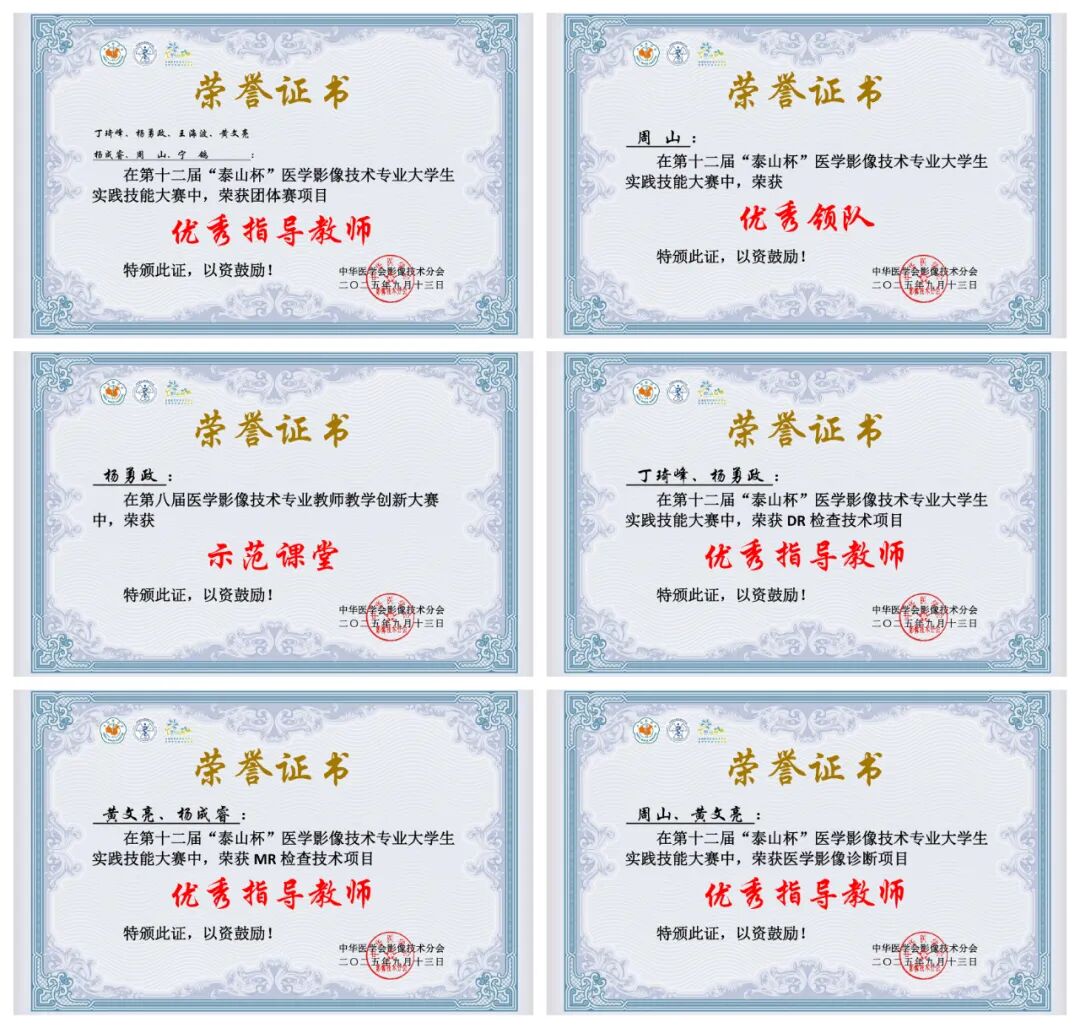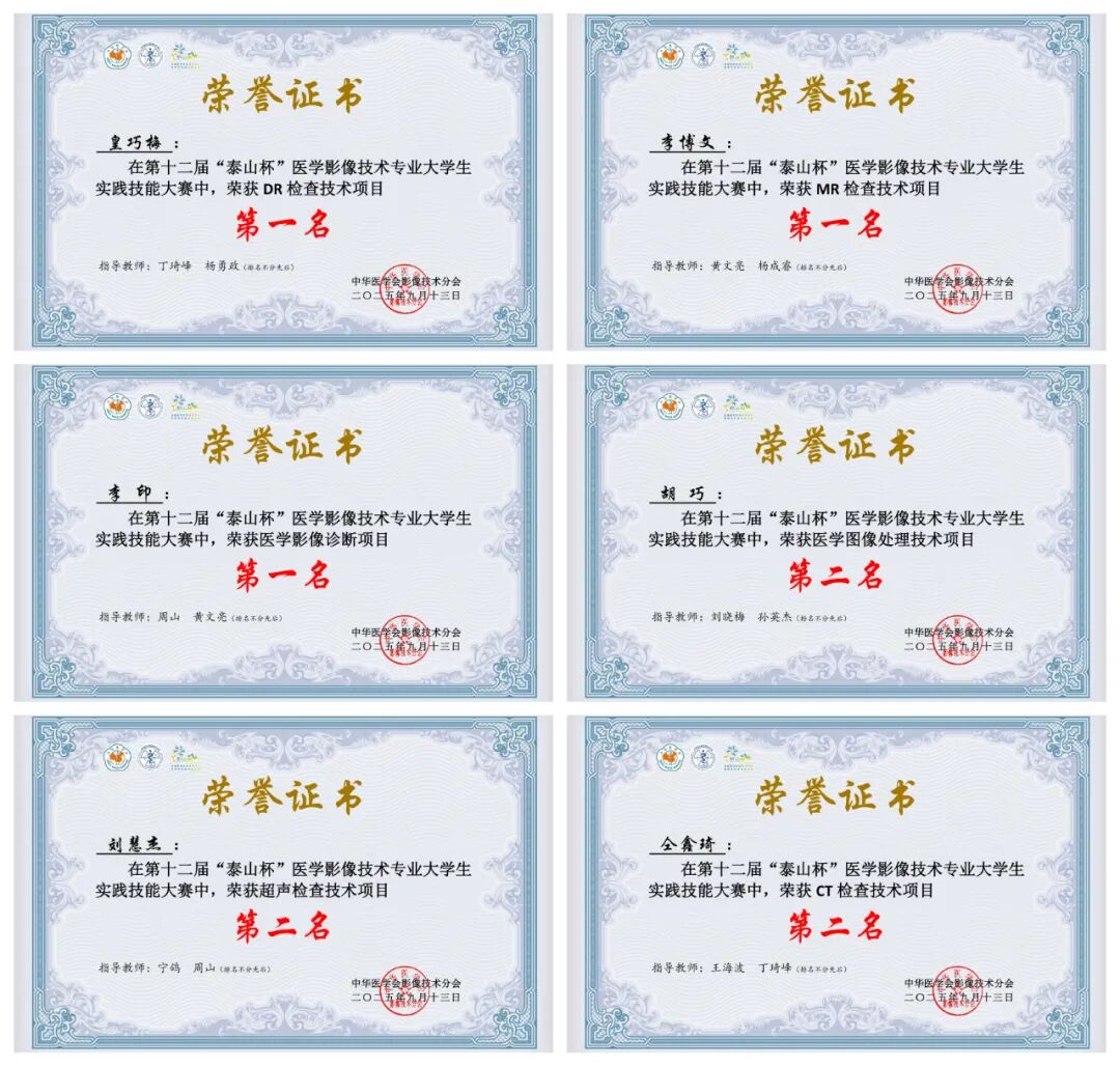 其中學(xué)生皇巧梅、李博文、李印分別榮獲DR、MRI檢查技術(shù)項(xiàng)目和醫(yī)學(xué)影像診斷項(xiàng)目第一名,劉慧杰、仝鑫琦、胡巧同學(xué)分別榮獲超聲、CT檢查技術(shù)和醫(yī)學(xué)圖像處理項(xiàng)目第二名,楊勇政老師在教師教學(xué)比賽中榮獲優(yōu)秀創(chuàng)新大賽示范課堂,最終參賽團(tuán)隊(duì)以優(yōu)異的綜合成績摘得團(tuán)體項(xiàng)目競賽第一名的桂冠,優(yōu)秀的成績贏得了大賽評(píng)委和參賽同道的廣泛贊譽(yù)。這也是繼2018年首次參加該賽事以來,漯河醫(yī)專二附院醫(yī)學(xué)影像教學(xué)團(tuán)隊(duì)取得的又一優(yōu)異成績。