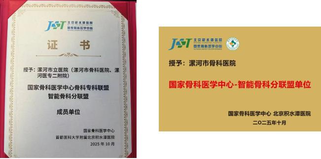 10月18日,國家骨科醫(yī)學(xué)中心骨科??坡?lián)盟智能骨科分聯(lián)盟授牌儀式在北京積水潭醫(yī)院舉辦,漯河醫(yī)專二附院(漯河市骨科醫(yī)院、漯河市立醫(yī)院)憑借在骨科領(lǐng)域的卓越實力和創(chuàng)新探索,成為智能骨科分聯(lián)盟成員單位。