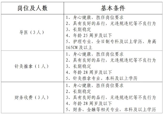 漯河市中醫(yī)院根據(jù)工作需要現(xiàn)委托第三方對(duì)導(dǎo)醫(yī)、針灸推拿、財(cái)務(wù)收費(fèi)輔助崗位人員實(shí)施勞務(wù)派遣。現(xiàn)公告如下: