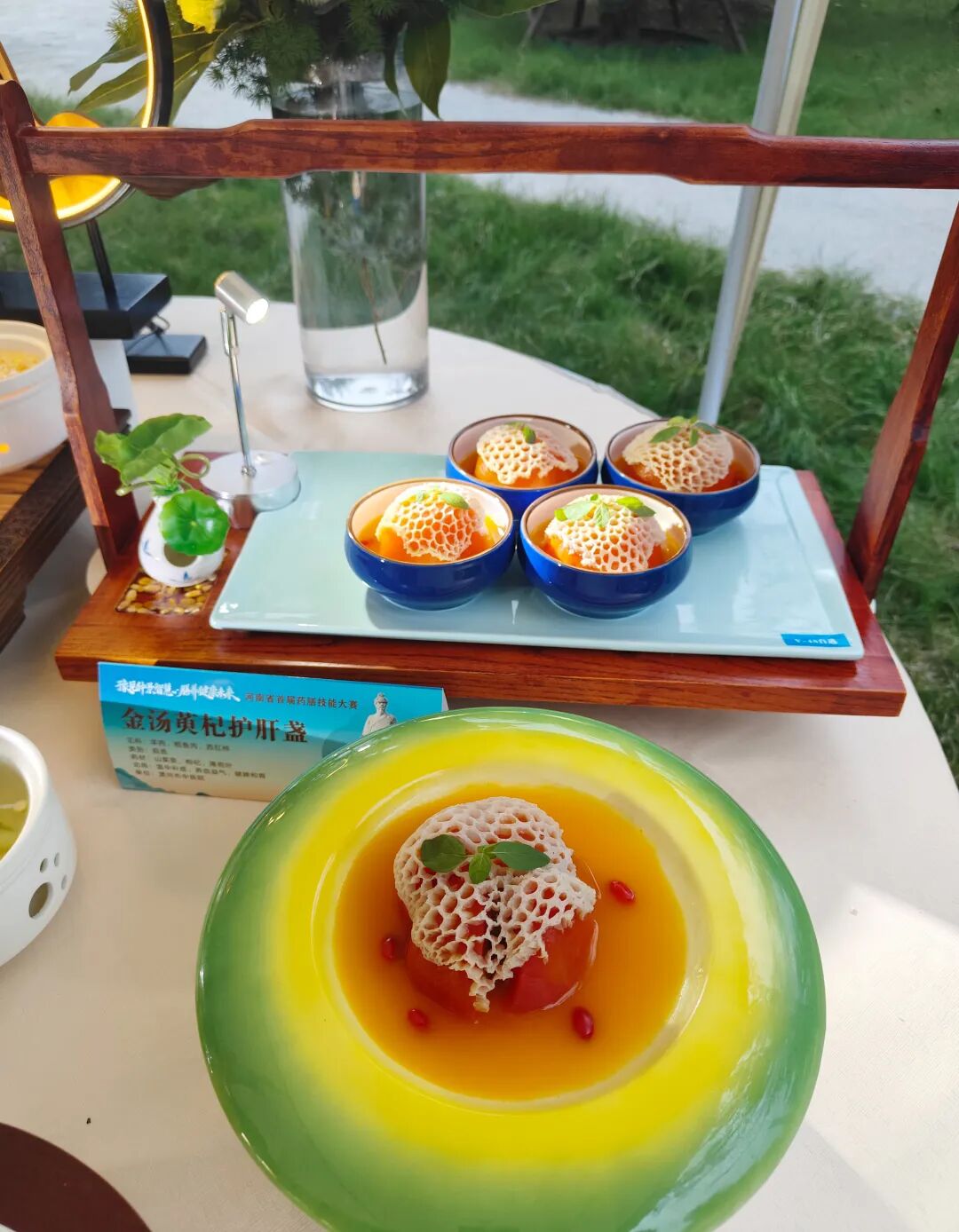 大賽中,全省 52 支隊(duì)伍經(jīng)理論知識(shí)與技能實(shí)操比拼,市中醫(yī)院隊(duì)員全員獲獎(jiǎng):漯河市中醫(yī)院獲團(tuán)隊(duì)二等獎(jiǎng),白冰參與制作的《金湯萸杞護(hù)肝盞》獲豫藥膳名菜金獎(jiǎng)第一名。白冰、楊丹獲個(gè)人一等獎(jiǎng),鞏潁、丁姣姣、趙靈靈獲個(gè)人二等獎(jiǎng);合作方漯河技師學(xué)院獲團(tuán)隊(duì)優(yōu)秀獎(jiǎng)。