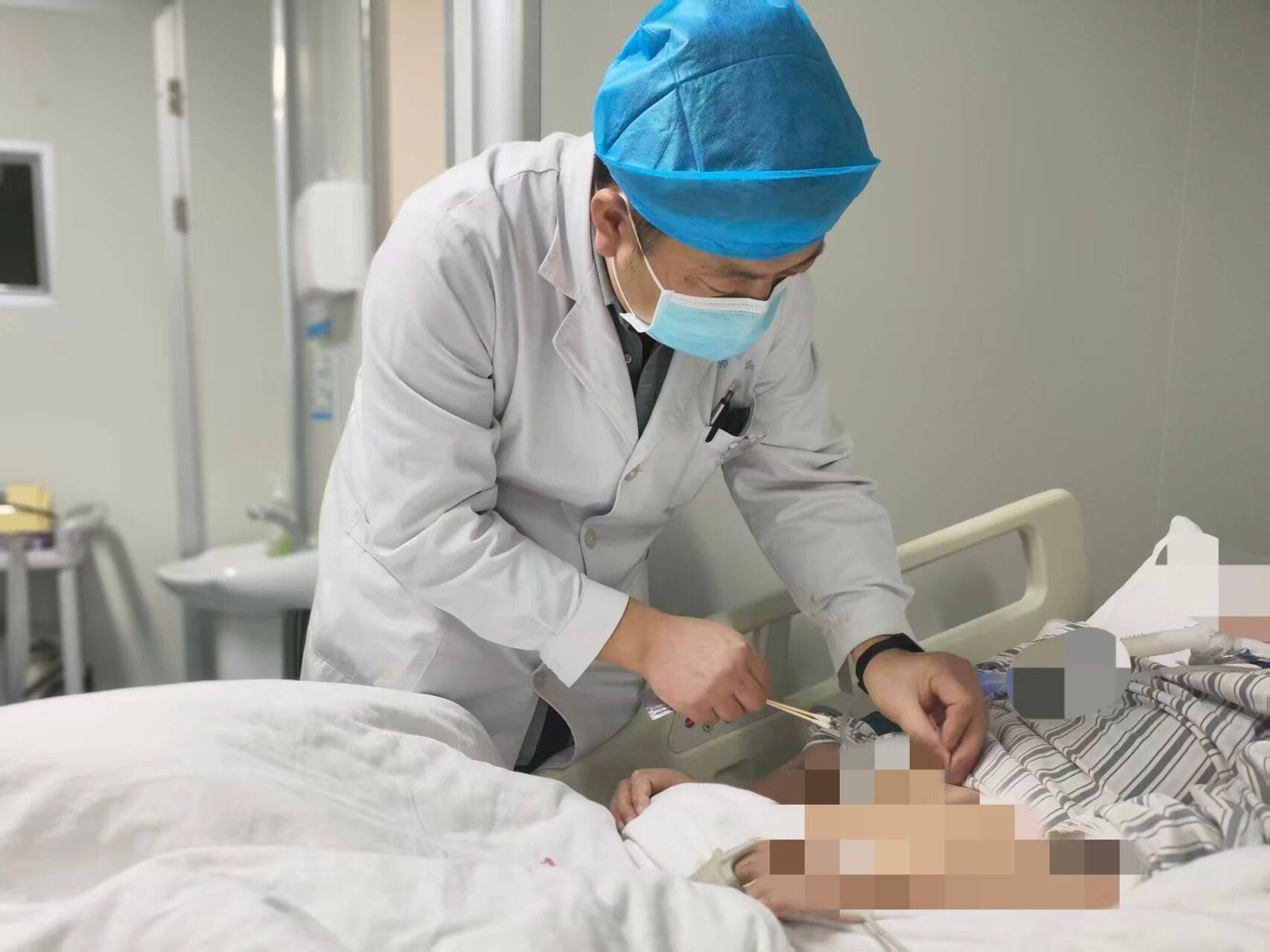 治療期間,患者出現(xiàn)嚴(yán)重腹脹,影響營(yíng)養(yǎng)吸收與呼吸功能,西藥治療緩解不佳??祻?fù)科團(tuán)隊(duì)及時(shí)介入,發(fā)揮中醫(yī)優(yōu)勢(shì):通過針灸、中藥灌腸、中藥外敷、耳穴壓豆等綠色中醫(yī)療法,與西醫(yī)治療形成互補(bǔ),腹脹難題得以緩解,為全面康復(fù)掃清障礙。