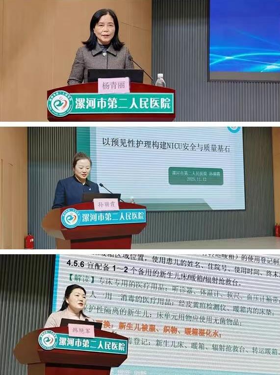 學(xué)術(shù)交流環(huán)節(jié),市中心醫(yī)院NICU護(hù)士長(zhǎng)楊青麗以《新生兒低血糖臨床規(guī)范管理專家共識(shí)》(2021)為題,系統(tǒng)闡述了新生兒低血糖的“預(yù)防、篩查、干預(yù)、隨訪”四個(gè)重點(diǎn);市二院護(hù)理部副主任孫麗霞分享了《以預(yù)見(jiàn)性護(hù)理構(gòu)建NICU安全與質(zhì)量基石》,點(diǎn)明預(yù)見(jiàn)性護(hù)理是NICU生命安全保障的基石,也是質(zhì)量持續(xù)提升的第一道防線;市二院感控辦副主任韓艷軍以《新生兒病區(qū)醫(yī)院感染預(yù)防與控制標(biāo)準(zhǔn)》進(jìn)行了交流,闡明要嚴(yán)守感控標(biāo)準(zhǔn),筑牢安全防線,保障每一位新生兒的健康與安全;市婦幼保健院兒科護(hù)士長(zhǎng)鄭文韜以《高危兒靜脈通路的合理選擇》展開(kāi),講解了高危兒靜脈通路的選擇,核心在于基于個(gè)體評(píng)估,實(shí)現(xiàn)安全與療效的最佳平衡;市二院靜療專科護(hù)士李艷結(jié)合《兒童靜療常見(jiàn)并發(fā)癥的預(yù)防及處理》,提出兒童靜療安全,核心在于以預(yù)防為首;市二院傷口造口??谱o(hù)士馬美華分享了《兒童常見(jiàn)皮膚護(hù)理與管理》,闡述嚴(yán)守預(yù)防底線,踐行精細(xì)照護(hù),是守護(hù)新生兒稚嫩肌膚、避免醫(yī)源性皮膚損傷的根本之道。