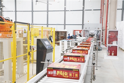 在不遠(yuǎn)處的河南鹽津鋪?zhàn)邮称酚邢薰旧a(chǎn)基地,一條條全自動生產(chǎn)線上,全新包裝的薯片、鵪鶉蛋正源源不斷地快速輸送。廠房隔壁,公司二期項(xiàng)目正在火熱施工。“我們現(xiàn)在是一邊滿產(chǎn)運(yùn)行,一邊加快二期北方區(qū)域物流中心和肉脯生產(chǎn)線項(xiàng)目建設(shè)。”該公司行政負(fù)責(zé)人薛明指著公司項(xiàng)目規(guī)劃圖介紹,按照公司“一基地兩中心”發(fā)展規(guī)劃,明年將啟動三期建設(shè)。