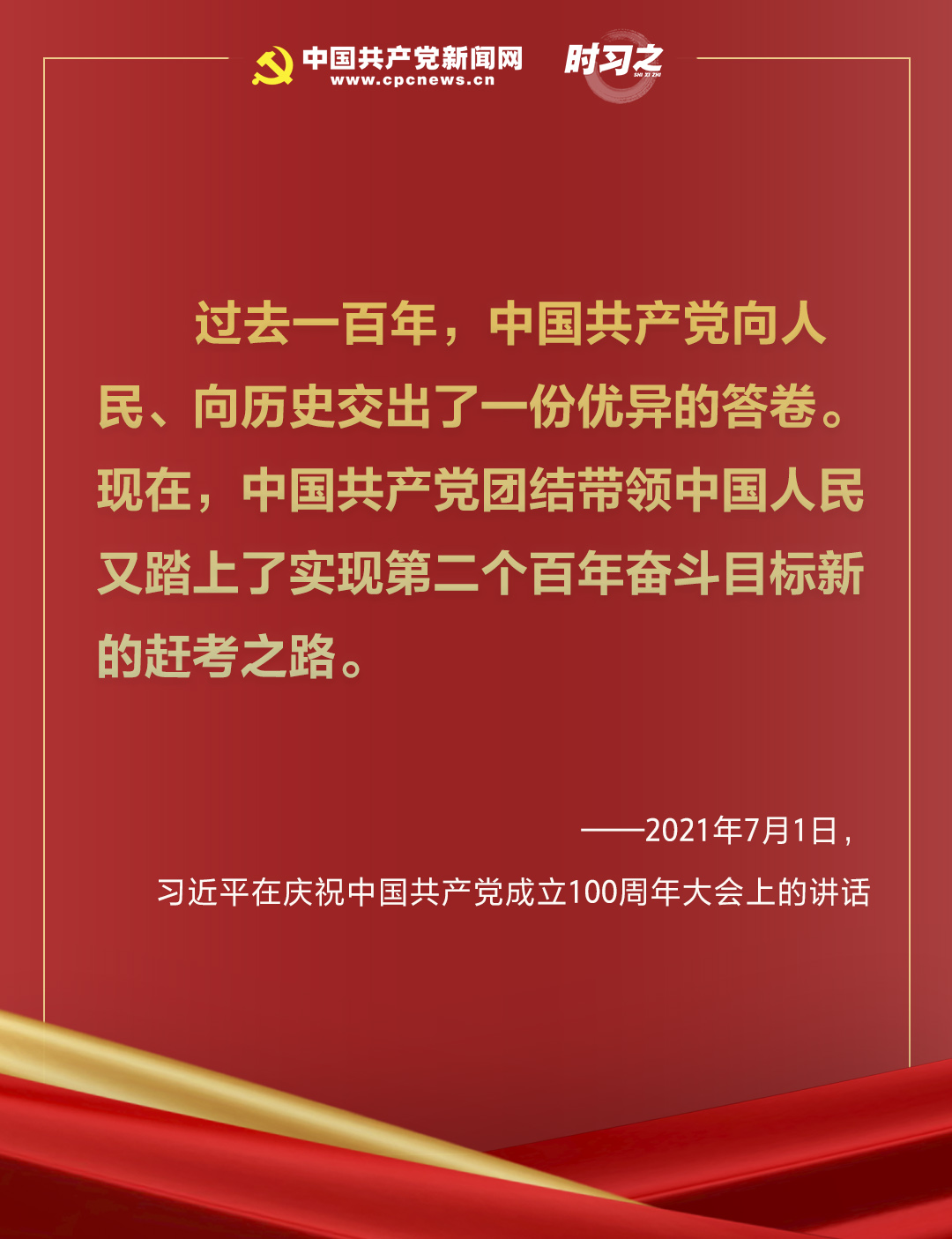2021年7月,建黨百年的輝煌時刻,習(xí)近平總書記在慶祝中國共產(chǎn)黨成立100周年大會上莊嚴(yán)宣告,“現(xiàn)在,中國共產(chǎn)黨團結(jié)帶領(lǐng)中國人民又踏上了實現(xiàn)第二個百年奮斗目標(biāo)新的趕考之路。”