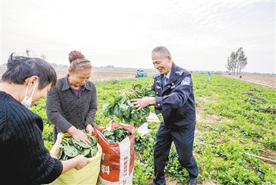 陳曉磐幫蔬菜種植戶(hù)收菠菜(資料圖片)。