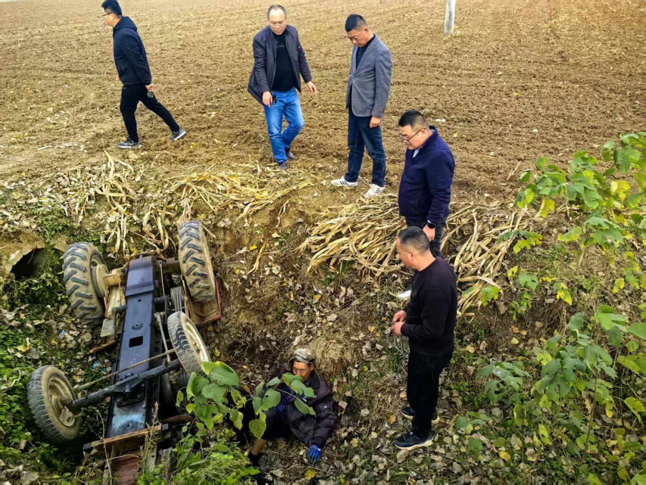 “快過來,有人被拖拉機(jī)壓住了!”王行下車查看后喊道。聽到呼喊聲,幾人立即下車,到達(dá)現(xiàn)場后發(fā)現(xiàn),溝里側(cè)翻著一輛拖拉機(jī),一位老人趴在溝里,他的左手手臂被拖拉機(jī)死死壓著。“王行你馬上聯(lián)系派出所和120來支援,其他人拿上繩索、木棍過來救人。”張慶林看到這一情況,立即組織在場人員開展救援?,F(xiàn)場,為將老人從車底救出,六人一起用木棍將拖拉機(jī)固定,待拖拉機(jī)被抬升的一定高度后,王行立即將老人從車底抱了出來。“大爺,你是哪個(gè)村的,現(xiàn)在感覺怎么樣,家里人電話是多少呀?”谷稅興問到,起初老人有點(diǎn)迷糊,過了幾分鐘后才慢慢緩過來。