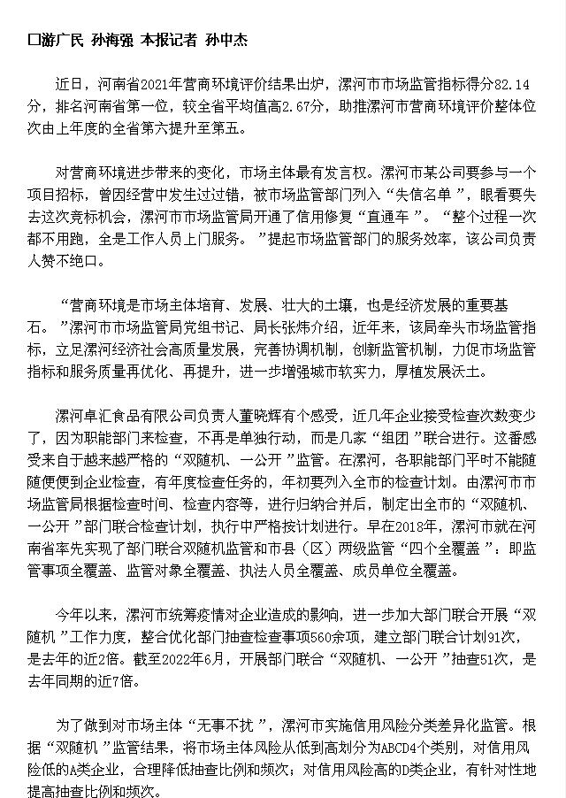 漯河:全省首位!權威媒體《中國質量報》特別關注!
