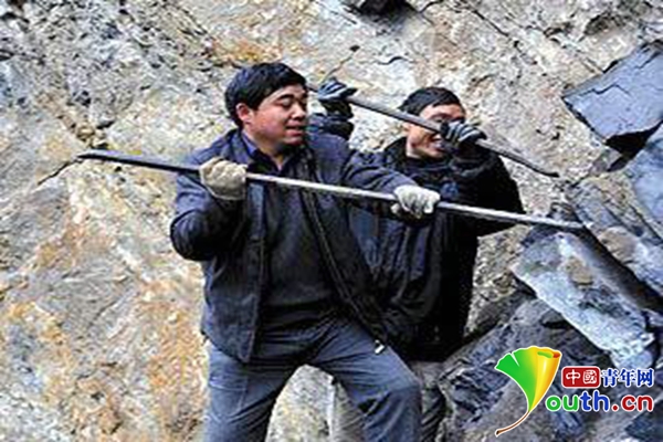 一天一雙手套,一月一雙膠鞋。8年來,“愚公支書”王光國帶領(lǐng)600多名村民,一鋤一鋤,一釬一釬地砸向絕壁頑石。他總說,“我們幾百個村民,只要埋頭苦干,炸山開石,一米一米地鑿,總有打通的一天。即便我們這輩打不通,還有下一輩人!”