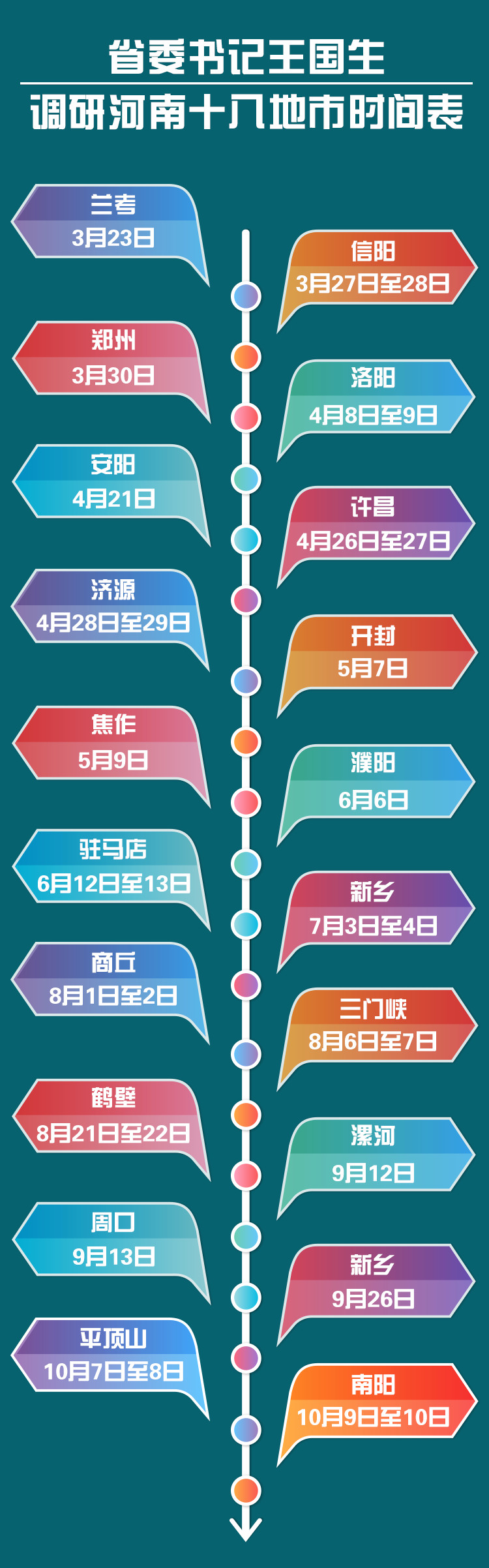 10月10日,省委書(shū)記王國(guó)生結(jié)束在南陽(yáng)的調(diào)研之行,這也意味著,主政河南203天后,他的調(diào)研足跡已覆蓋全省十八地市。