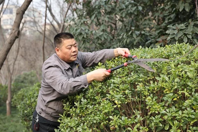 “2009年20歲的我第一次修剪植物,看著眼前的紫荊,卻不敢下手,怕剪壞了。那時候我爸就手把手的教我,告訴我哪里是需要修剪的,哪里的枝需要留下來。”張閣回想起第一次拿平剪的緊張模樣,至今記憶猶新。