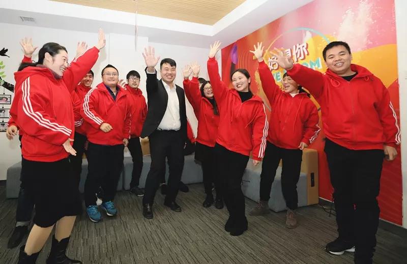 ┇石訓(xùn)和員工們慶祝雙11的成功