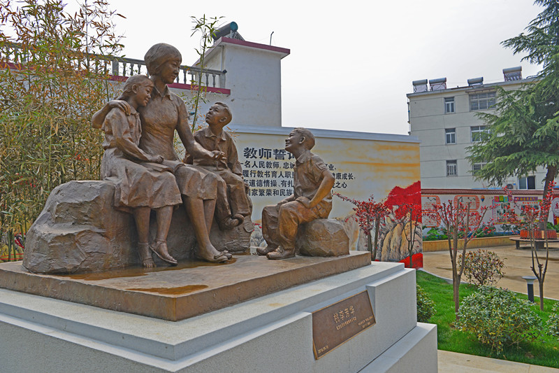 4月3日,清明前夕。學校大門一側(cè)不久前落成的“桃李芳華園”里,60余名佩戴黨員徽章的同志整齊佇立在全國最美教師李芳塑像前,祭英烈、懷英雄、溫誓詞、踐初心。他們是參加“清明祭英烈、遺志永傳承”主題黨日活動的浉河區(qū)教育系統(tǒng)的黨員干部。