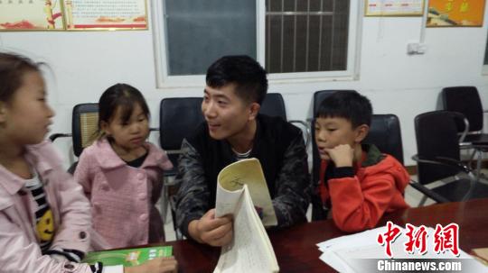 上苑村駐村隊員幫村里的孩子輔導功課。趙海洋供圖