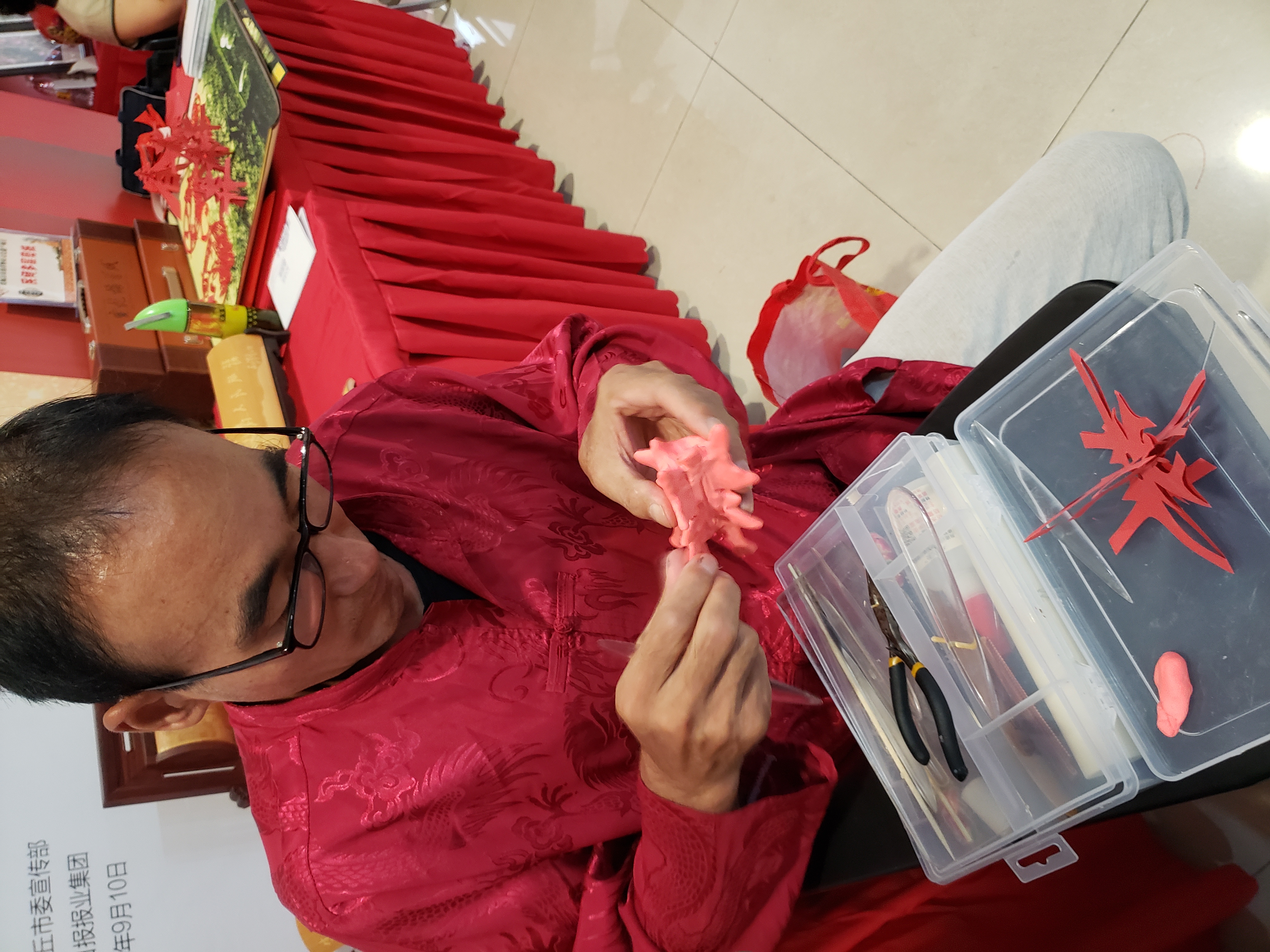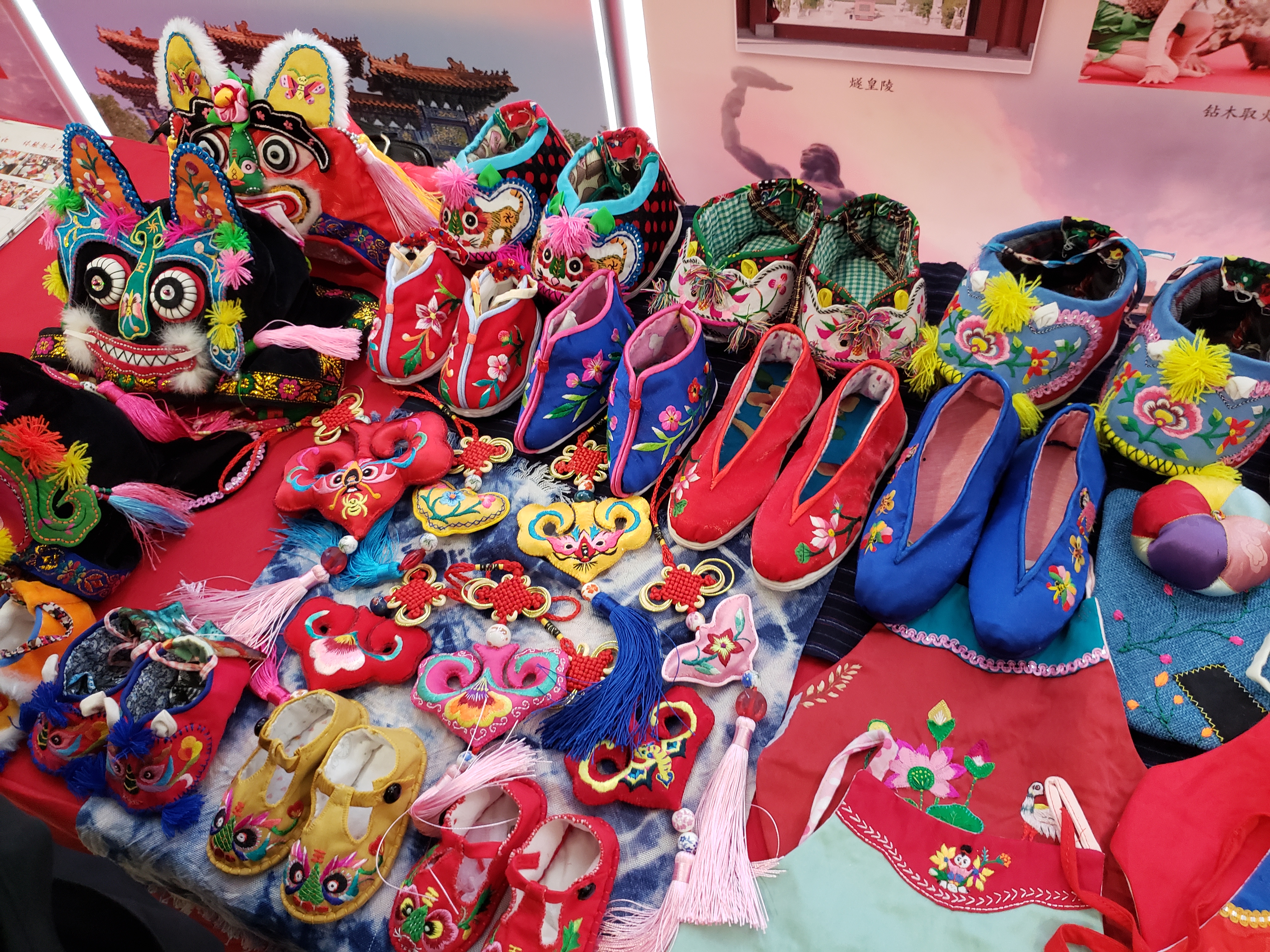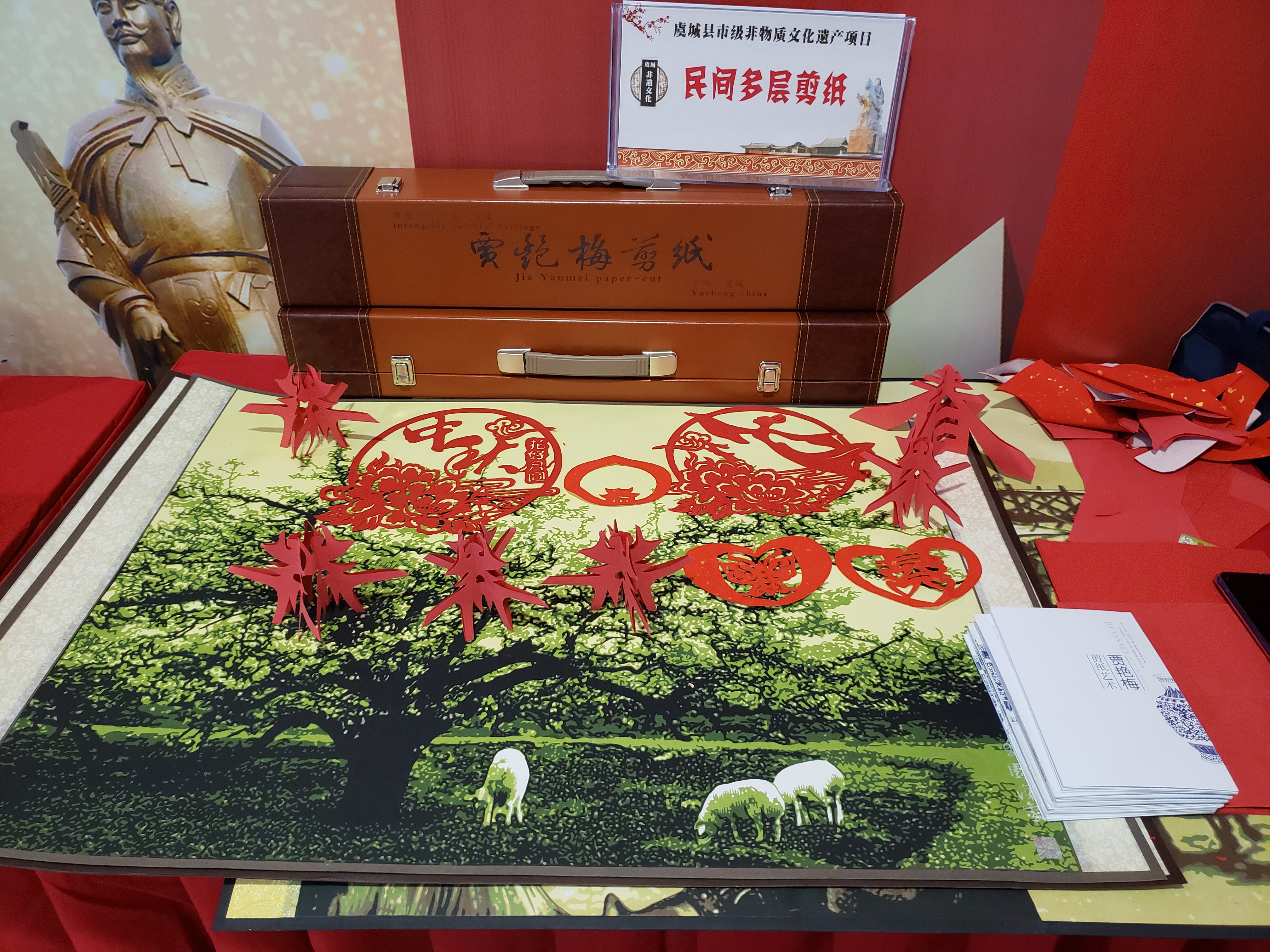 在發(fā)布會(huì)前的商丘非遺展示區(qū)域,獨(dú)具特色的葫蘆烙畫(huà)、民間布藝、多層剪紙、面塑、泥塑和栩栩如生毫發(fā)畢現(xiàn)的老虎畫(huà)作,展示出了商丘豐富的非遺傳承和厚重的文化底蘊(yùn)。