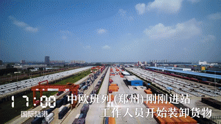 中歐班列(鄭州)剛剛進站 工作人員開始裝卸貨物