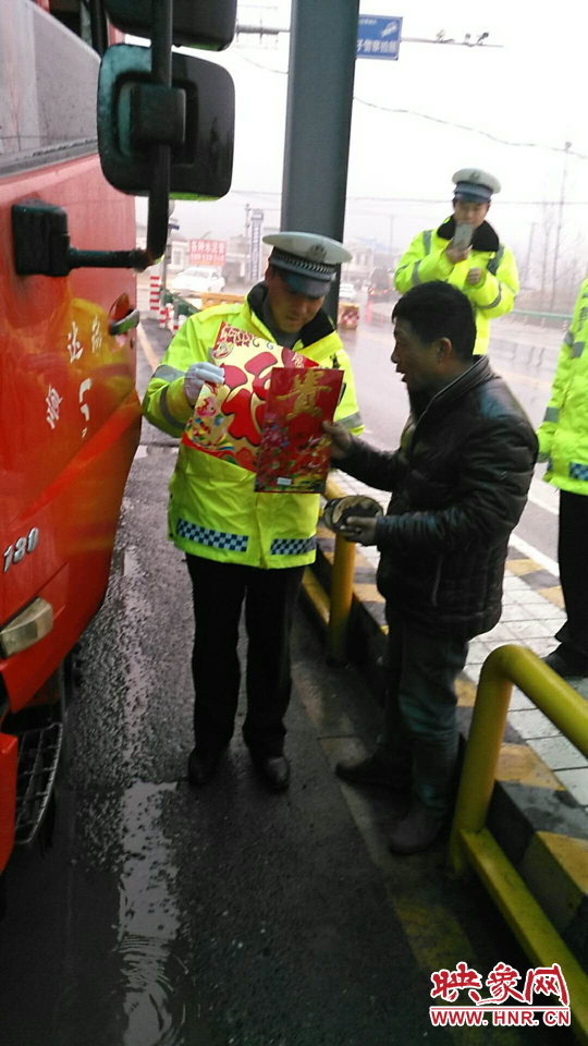 西坪執(zhí)法服務(wù)站給過(guò)往車輛贈(zèng)送春聯(lián)