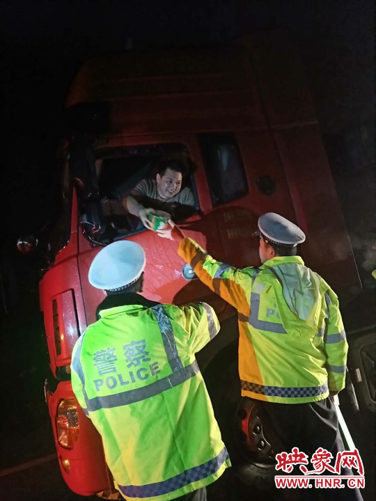 西坪執(zhí)法服務(wù)站組織人員對(duì)路段內(nèi)滯留的司乘人員送去了熱水,方便面,面包等物品