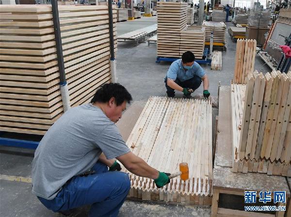 4月24日,工人們?cè)谏a(chǎn)木門,恒大家居園為當(dāng)?shù)靥峁┘s1500個(gè)就業(yè)崗位,群眾實(shí)現(xiàn)家門口就業(yè)增收。新華社記者顧立林?jǐn)z