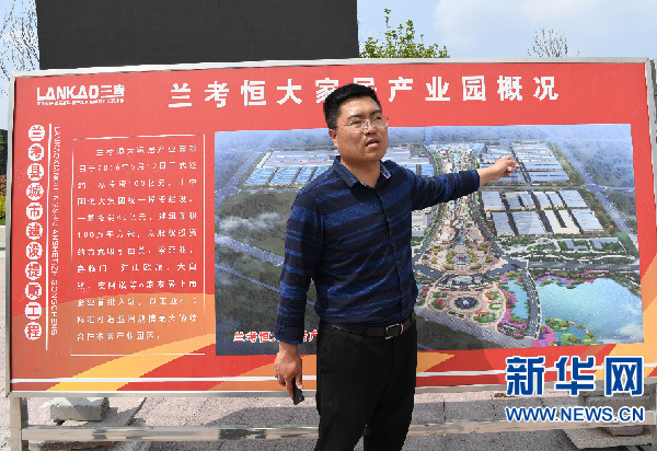 4月24日,蘭考恒大家居產(chǎn)業(yè)園負(fù)責(zé)人介紹相關(guān)情況。新華社記者 顧立林 攝